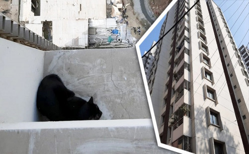 ১৬ তলার কার্নিশে আটকে পড়া বিড়াল উদ্ধার করল ‘রবিনহুড’