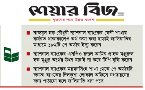 ন্যাশনাল ব্যাংকে পে অর্ডার জালিয়াতির চেষ্টা