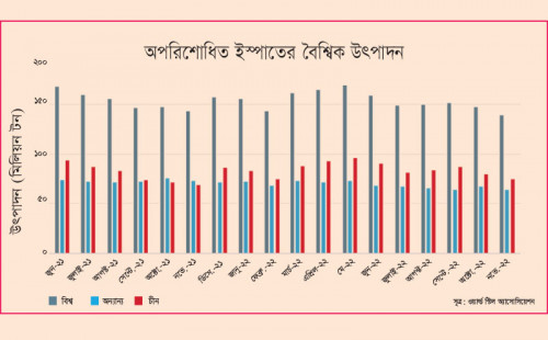 ইস্পাতের বৈশ্বিক উৎপাদন ৩.৭ শতাংশ কমেছে