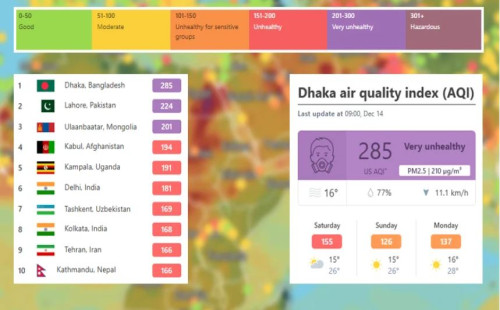 দূষিত বাতাসের শহরের তালিকায় ঢাকা আজ তৃতীয়