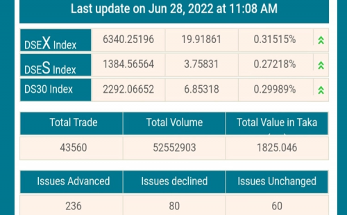 শুরুতে সূচক ঊর্ধ্বমুখী, লেনদেনে ধীরগতি