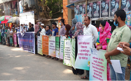 ঝিনাইদহে জলবায়ু পরিবর্তন বিষয়ক কপ-২৬ সম্মেলন উপলক্ষে মানববন্ধন
